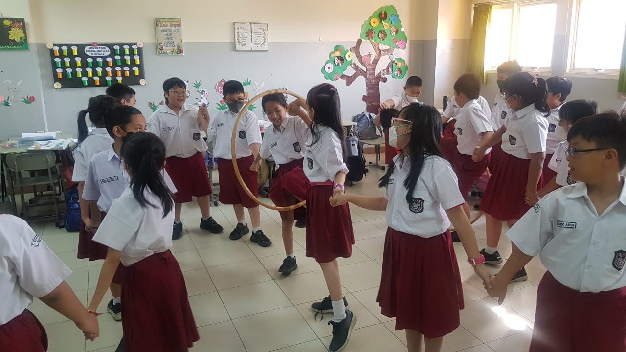 Semangat dan keceriaan siswa SD Kristen Petra 7 tergambar jelas saat memiliki kesempatan mengikuti acara modern oleh Evelyn di
