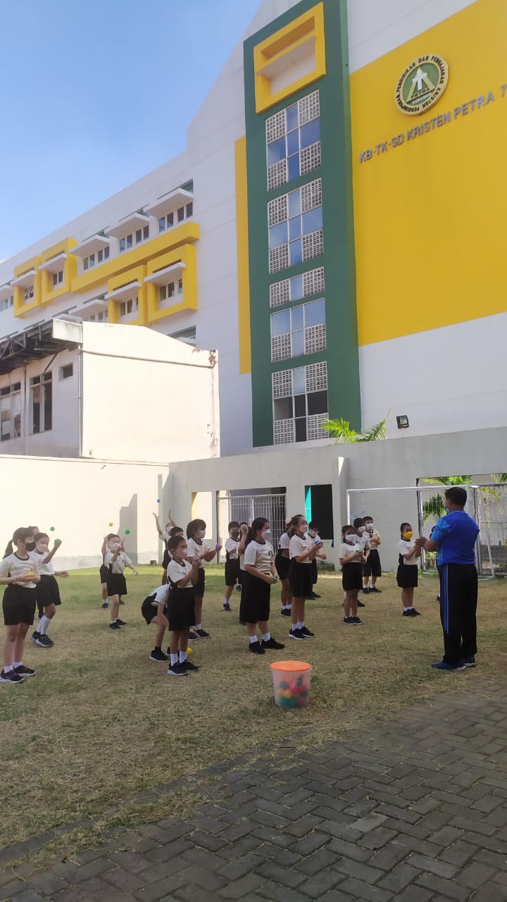 Siapa yang tahu, apa yang harus dilakukan supaya kegiatan olahraga terasa mengasyikan? Ya, salah satu cara supaya kegiatan olahraga terasa mengasyikan yaitu dilakukan dengan sebuah permainan. Seperti yang dilakukan oleh siswa-siswi kelas 3 SD Kristen Petra 7. Pada kegiatan olahraga kali ini, para siswa SD Kristen Petra 7 melakukan permainan lempar tangkap bola. Lempar tangkap bola merupakan salah satu permainan yang menggunakan bola sebagai media. Nah, ternyata permainan lempar tangkap bola selain bisa digunakan sebagai permainan dalam olahraga, juga memiliki banyak manfaat lho. Salah satu manfaat permainan lempar tangkap bola yaitu untuk melatih kerjasama antara mata, tangan, dan kaki. Selain itu, lempar tangkap bola juga dapat menguatkan otot-otot tangan dan kaki. Kemudian, secara tidak langsung permainan lempar tangkap bola ini bisa melatih konsentrasi kita. Ternyata selain mengasyikan, permainan lempar tangkap bola memiliki banyak manfaat ya. Jadi, tunggu apalagi? Ayo, kita rajin berolahraga dengan cara yang menyenangkan dan mengasyikkan, salah satunya yaitu dengan melakukan permainan lempar tangkap bola.
