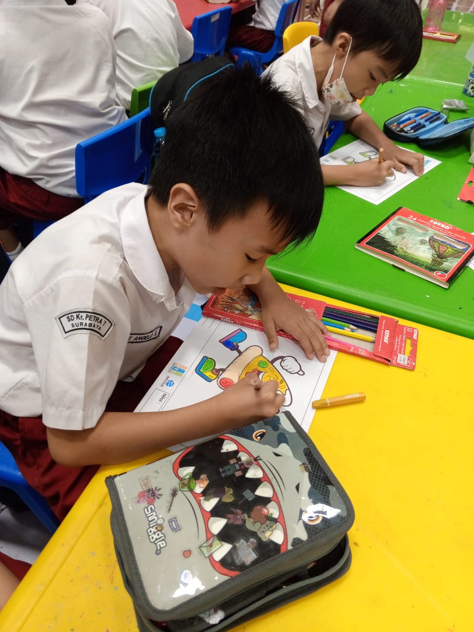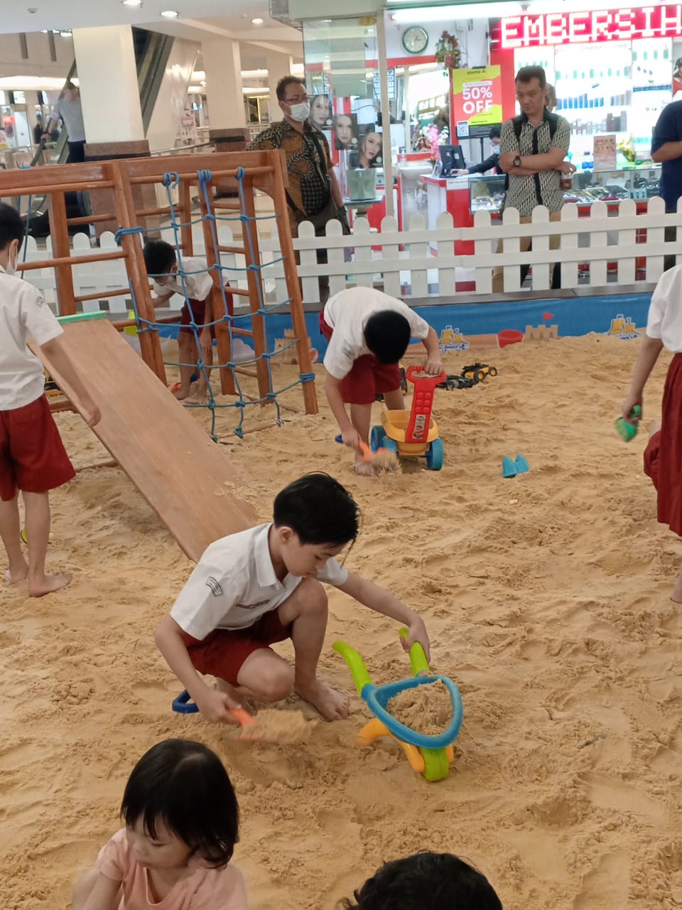 Tentu tidak hanya membuat pizza dan menghias donat saja, tetapi mereka juga mengikuti lomba mewarnai. Mereka saling berlomba menggoreskan warna terbaik agar bisa menang. Setelah selesai, siswa siswi langsung menuju ke Rumah Kumbang. Di sana mereka sangat antusias sekali karena kegiatan kali ini adalah bermain pasir dan ada permainan lainnya yang bisa membantu sistem motorik siswa siswi menjadi lebih bagus seperti perosotan, ayunan, dan masih banyak lagi. Saat bermain pasir mereka pun juga belajar hal baru, seperti belajar tekstur pasir yang lembut, dan membuat berbagai macam bentuk menggunakan pasir. Dan tentunya mereka juga belajar memahami apa yang boleh dan tidak boleh dilakukan saat bermain pasir, seperti melempar dan menendang pasir. Jadi, belajar tidak selalu menggunakan buku, meja, dan harus duduk mendengarkan guru di dalam kelas, tetapi siswa siswi bisa mengeksplor hal-hal baru di sekitar mereka sambil bermain.