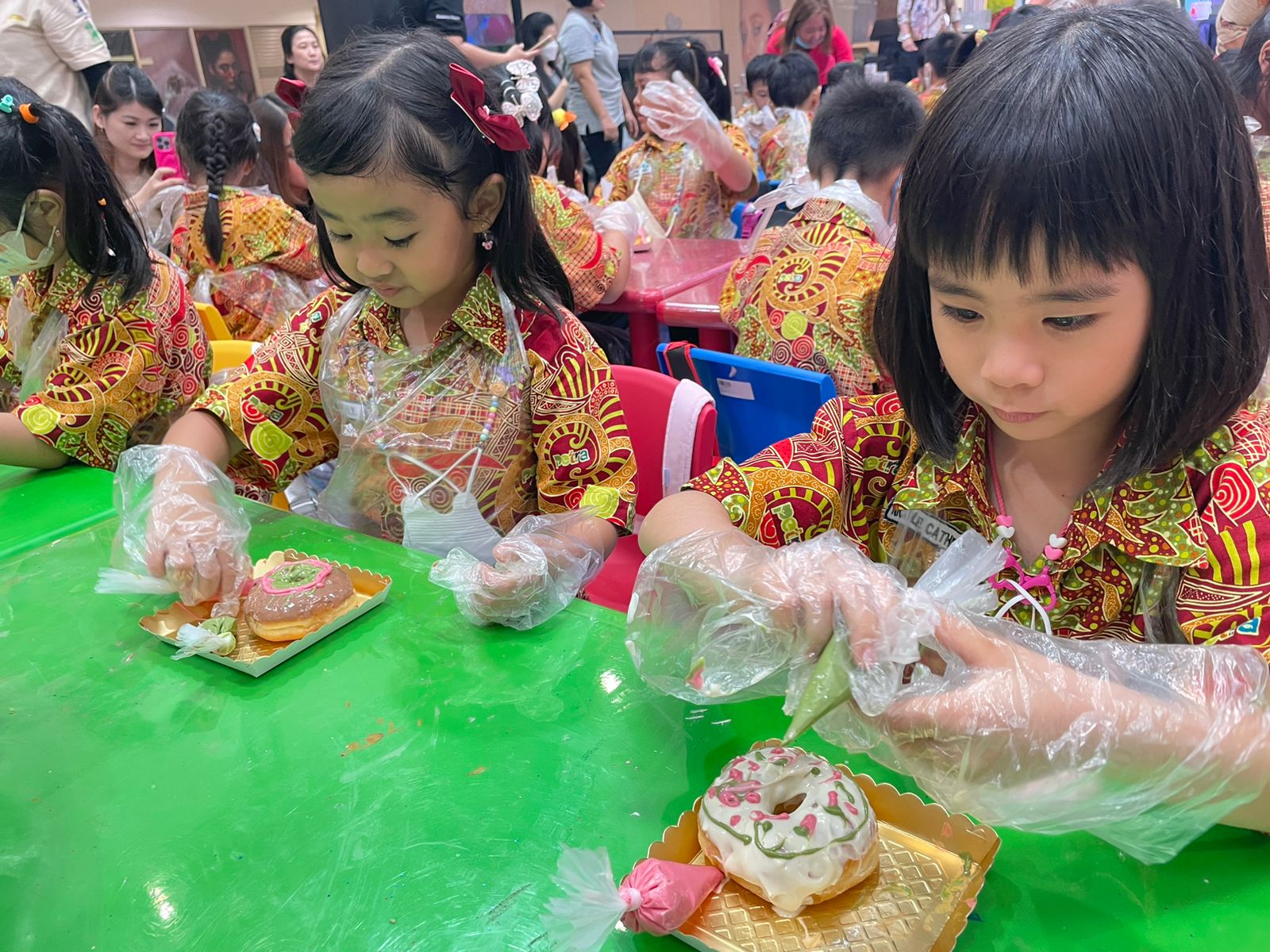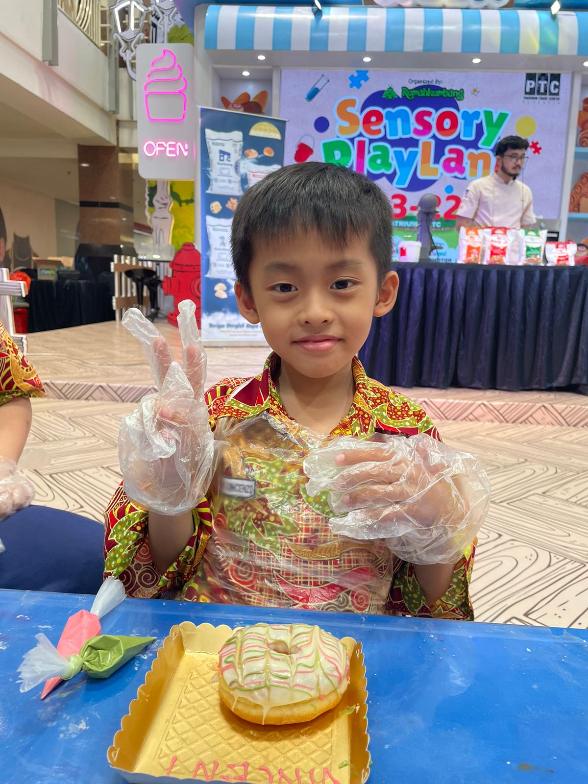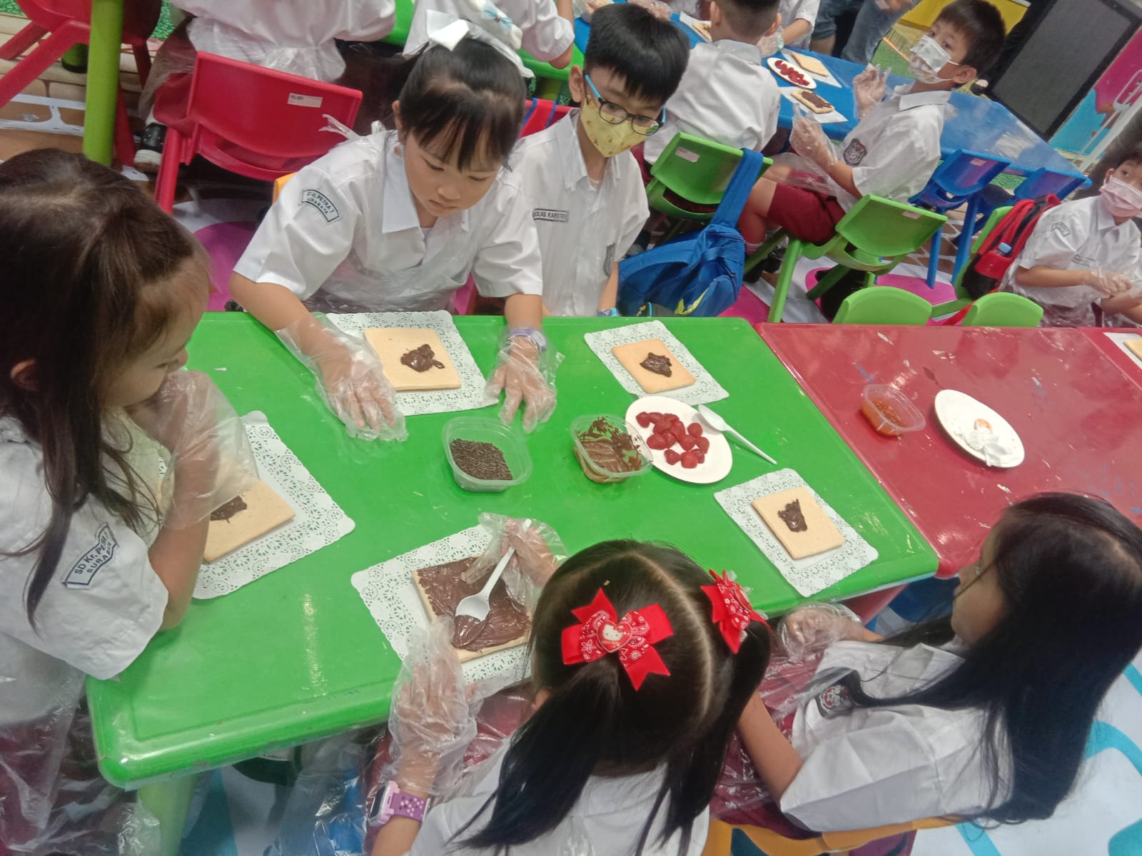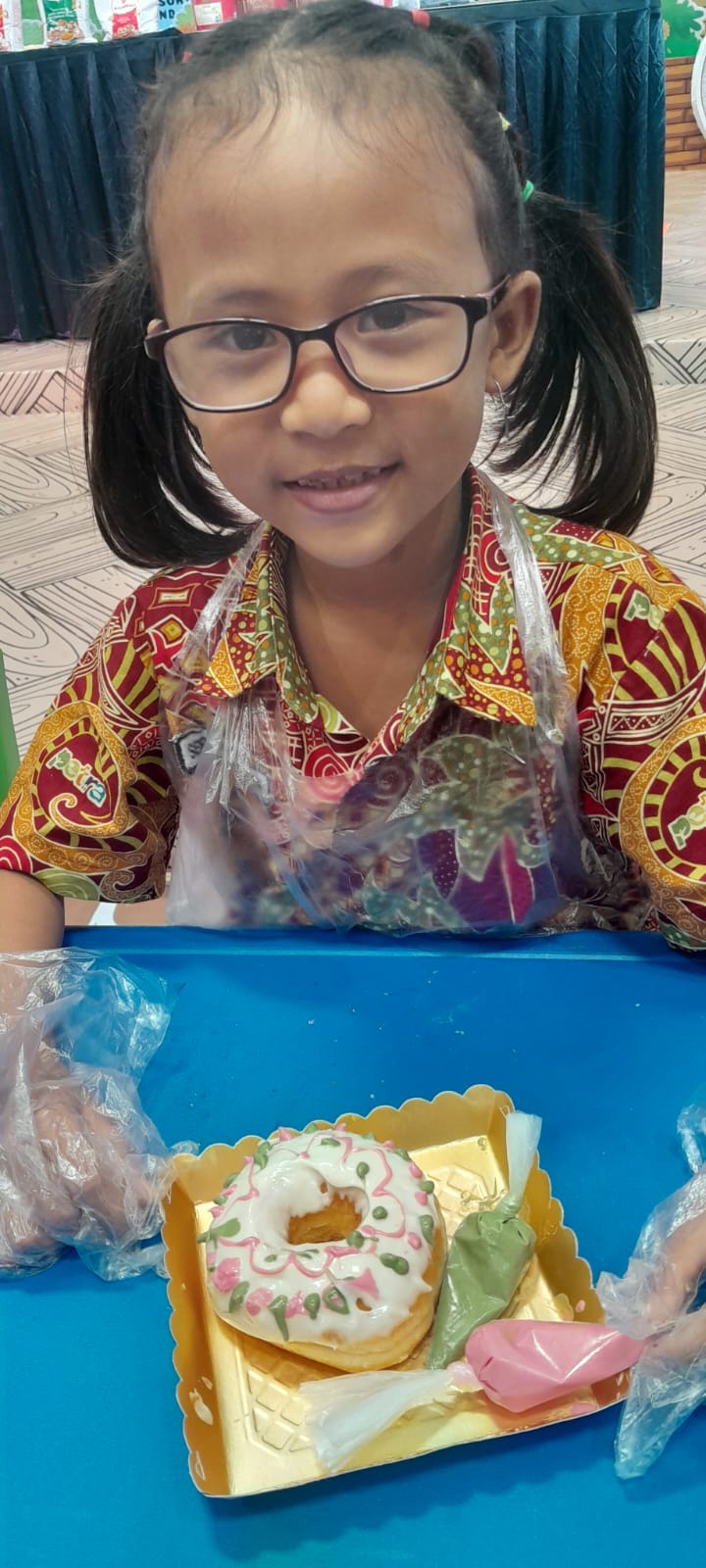 haRI Kamis, 19 Oktober 2023 dan Jum’at, 20 Oktober 2023 siswa siswi kelas 1 dan 2 mengikuti kegiatan field trip ke PTC. Mereka sangat senang sekali karena bisa melakukan banyak hal. Hal pertama yang mereka lakukan di sana adalah membuat pizza dan memberikan topping di atasnya. Tentu saja hal ini sangat menyenangkan karena bisa menyusun topping favorit, sehingga mengetahui bahan-bahan yang digunakan untuk topping pizza yang sering mereka makan selama ini. Selain itu, mereka juga bisa tahu bahwa pizza ada 2 jenis yaitu asin dan manis. Pizza asin mereka susun dengan saus, sosis, bawang bombay, dan keju sedangkan manis mereka beri topping selai coklat, stroberi, dan meses. Selain membuat pizza ada juga kegiatan menghias donat, bagi anak-anak cemilan donat sudah tidak asing lagi. Dengan bentuk bulat mereka bisa menghias donat menggunakan saus manis dengan berbagai warna dan pastinya aman. Mereka belajar memadupadankan warna supaya donat terlihat bagus, lucu, dan semakin menarik untuk dimakan. Dengan begitu mereka sudah belajar tentang seni. Wah…, pasti seru sekali ya menghias makanan kesukaan kita !