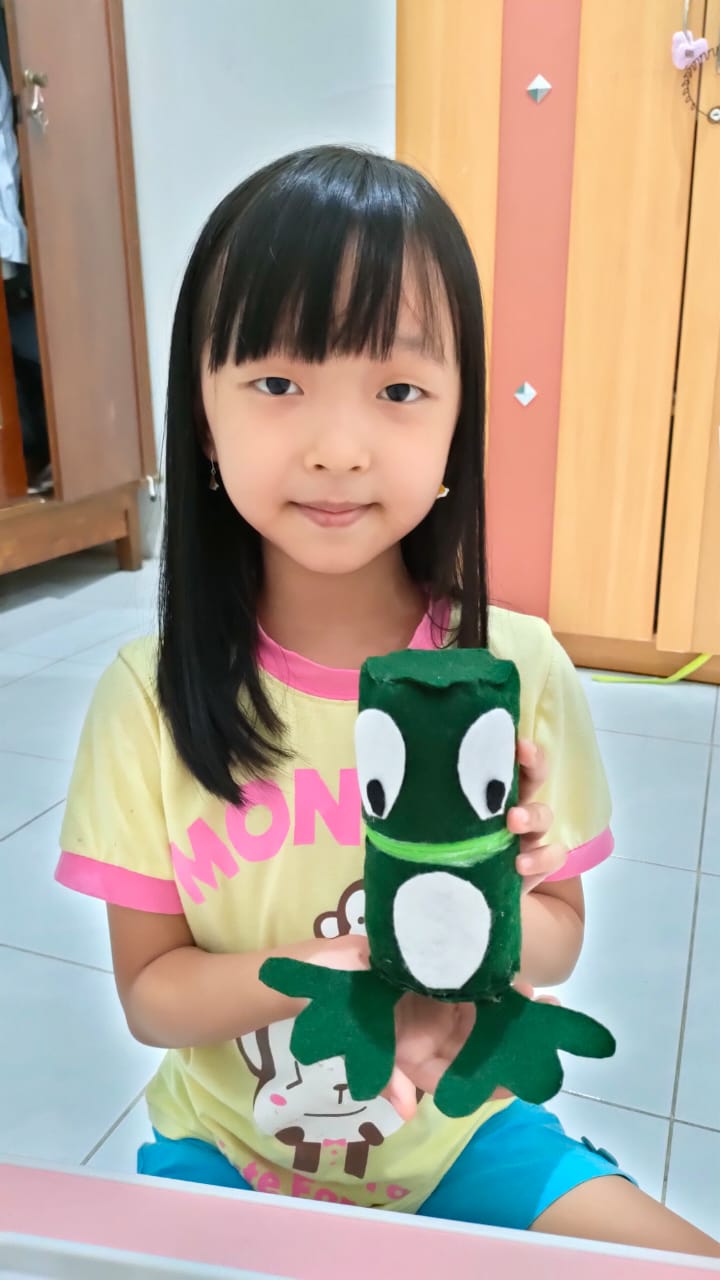 Orang tua mendampingi para siswa dalam proses pembuatan celengan, terutama ketika mengalami kesulitan dalam menggunakan gunting dengan benar agar jari tidak terluka. Setelah selesai menggunting dan menempel, akhirnya jadi juga celengan katak yang imut dan lucu. Ayo isi celengan setiap hari. Ini kreasiku…mana kreasimu, teman-teman.