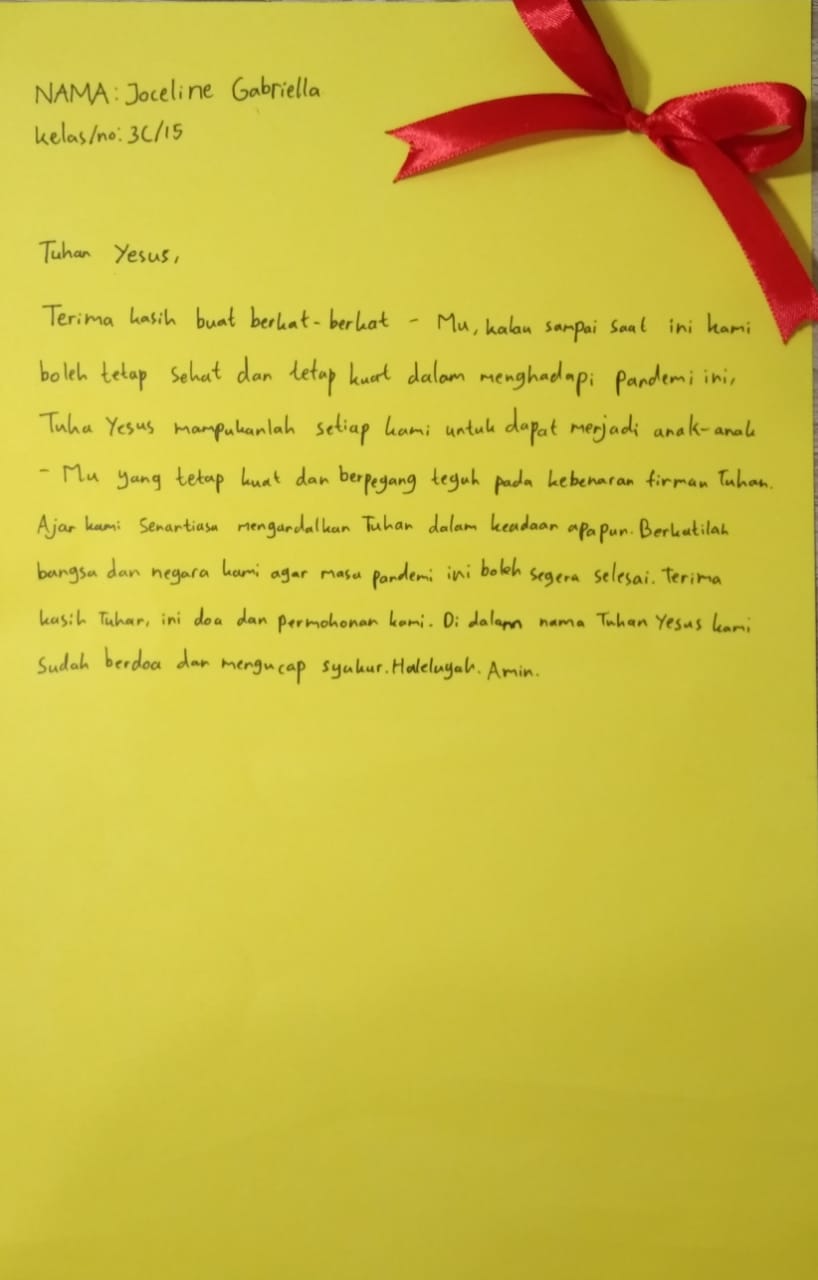 Sudah satu tahun lebih pandemi Covid 19 melanda seluruh dunia termasuk Indonesia, yang membuat para siswa harus belajar di rumah secara online. Selain belajar, para siswa juga mengikuti beberapa kegiatan sekolah, salah satunya adalah Proyek Bersama Orang tua yang diadakan pada hari Sabtu, 30 April 2021. Kegiatan ini diikuti oleh para siswa kelas III SD Kristen Petra 7. Proyek kali ini, para siswa membuat kartu doa dengan tema “Doa Untuk Bangsaku”.