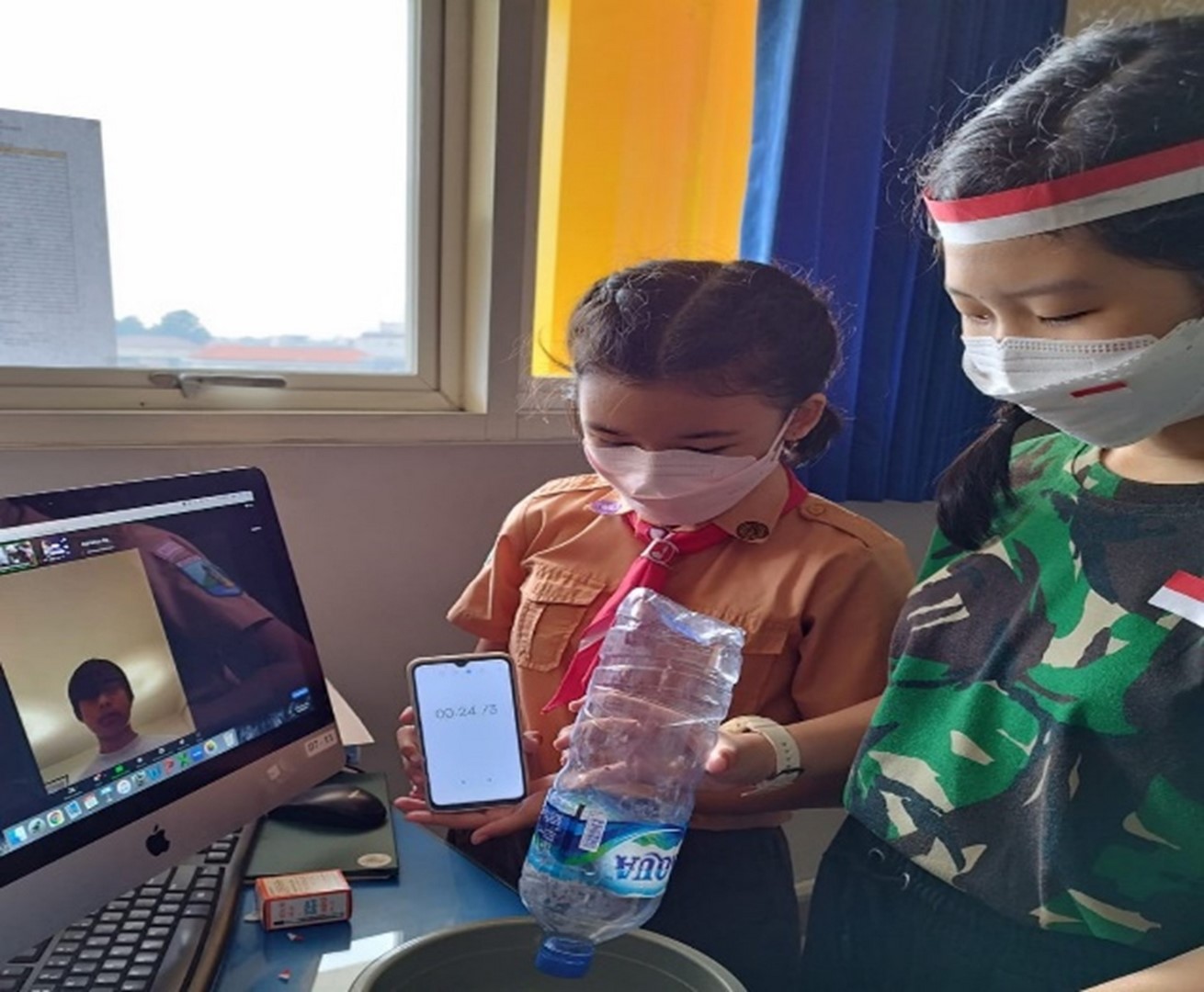 Kami dibagi menjadi 10 kelompok dari 30 siswa. Jadi setiap kelompok terdiri dari 3 siswa yang memiliki peran masing-masing, satu orang memegang botol, satu orang menjalankan stopwatch dan satu orang mengamati pergerakan air dalam botol dan memberi aba-aba kepada teman yang memegang stopwatch untuk mulai dan mengakhiri pengukuran waktu. Teman-teman ingin tahu bagaimana proses percobaannya ya? Yuuuk….kita ikuti bersama sama ya.