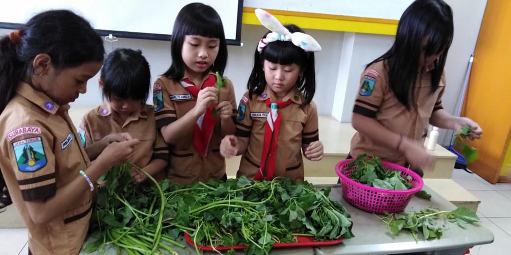 Sebelum dimasak menjadi masakan yang bergizi, sayur bayam harus dipetik terlebih dahulu. Nah, para siswa kelas II SD Kristen Petra 7 mengikuti kegiatan Basic Life Skills, yaitu memetik sayur bayam yang diadakan pada hari Kamis, 23 Januari 2020. Para siswa membawa sayur bayam dari rumah dan guru kelas membimbing para siswa memetik sayur bayam.