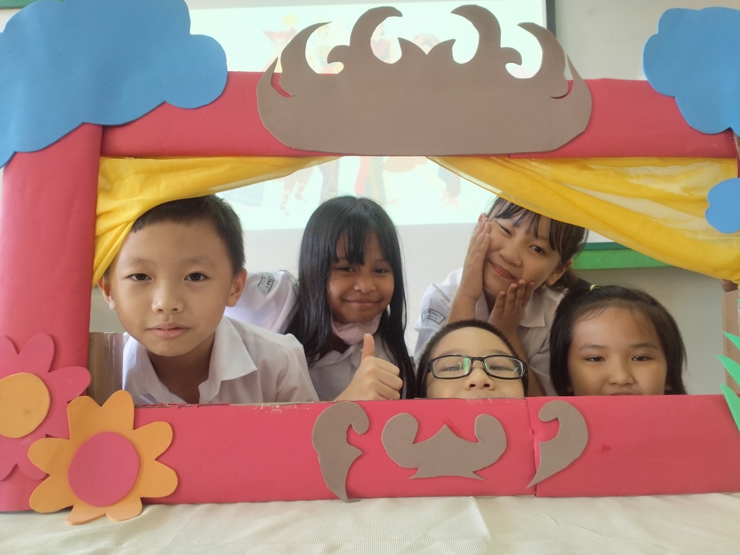 Selain itu, kami juga belajar membuat panggung budaya untuk wayang yang kami buat sendiri. Dengan kertas, kardus, dan alat-alat sederhana, kami membuat tokoh-tokoh wayang yang lucu dan unik. Kami membuat cerita lalu mempresentasikannya. Nilai yang terkandung dalam cerita yaitu sikap toleransi dan kebhinekaan Indonesia. Rasanya menyenangkan sekali bisa membuat dan memainkan wayang yang kami buat sendiri.