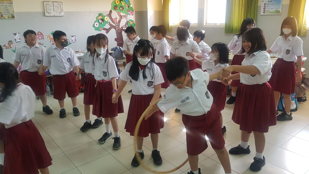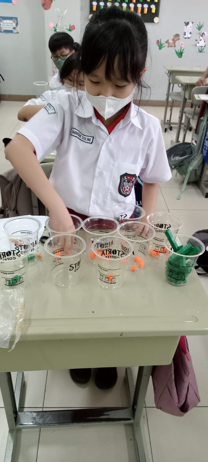 Untuk mengawali pembelajaran, kami diajak ice breaking dengan berhitung berantai menggunakan “hulahop” sambil menyebutkan angka lompat 1, 2, 3, sampai lompat 4 dan tidak terasa kami larut dalam permainan yang asyik. Rasa takut kami hilang seiring sukacita dan kerjasama kami. Setelah asyik dalam ice breaking, guru mengajak kami untuk kembali ke tempat duduk dan membagikan kepada setiap siswa 10 batang plastik, di mana setiap batang plastik berisi 10 cube. Guru meminta kami untuk menyiapkan 10 gelas plastik yang sudah dibawa dari rumah, 10 batang plastik, buku latihan, kemudian guru menayangkan apa yang harus dilakukan dan dikerjakan melalui layar LCD. Kami bekerja sesuai LKS yang ditayangkan. Kami juga serius membagi, memasukkan, dan menghitung setiap cube di sejumlah gelas plastik yang ditentukan. Akhirnya, tidak terlalu lama kami dapat menyelesaikan LKS dengan metode praktik langsung. Kami semua senang dan tidak takut lagi, karena belajar Matematika dengan mempraktekkan langsung. Kami jadi tahu konsep perkalian dan pembagian dengan mudah, dan selain itu kami jadi lebih percaya diri. Ayo teman-teman jangan takut lagi belajar Matematika, karena Matematika memang serius, tapi asyik loh! Kami sudah mencoba dan mempraktekkan langsung. Bagaimana dengan kalian? Kami menunggu pengalaman kalian juga ya…..