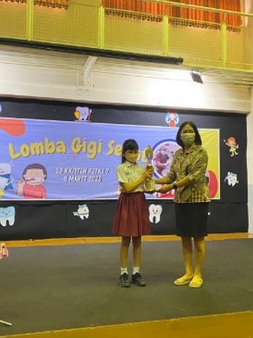 Suara tepuk tangan yang sangat meriah terdengar dari ruang serba guna SD Kristen Petra 7 pada hari Rabu tanggal 8 Maret 2023. Ada apakah gerangan? Oh ternyata ada pengumuman pemenang lomba gigi sehat, teman-teman. Sebenarnya, pelaksanaan lombanya sudah sejak beberapa hari yang lalu, diikuti oleh siswa-siswi kelas 4 yang bersemangat sekali untuk menunjukkan bahwa mereka sudah memelihara gigi dengan baik.
