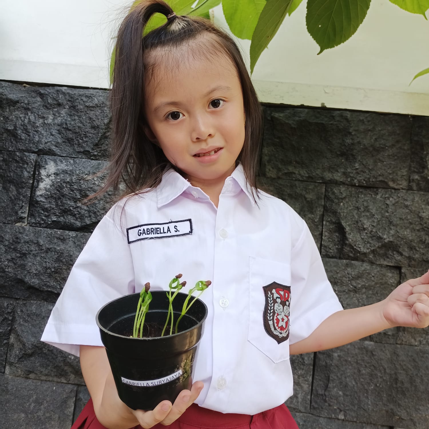Kami juga diajak untuk mensyukuri anugerah Tuhan atas bumi ini dengan cara tetap menjaga kebersihan dan melestarikan tumbuhan. Kami belajar menanam biji kangkung dan memberi pupuk.