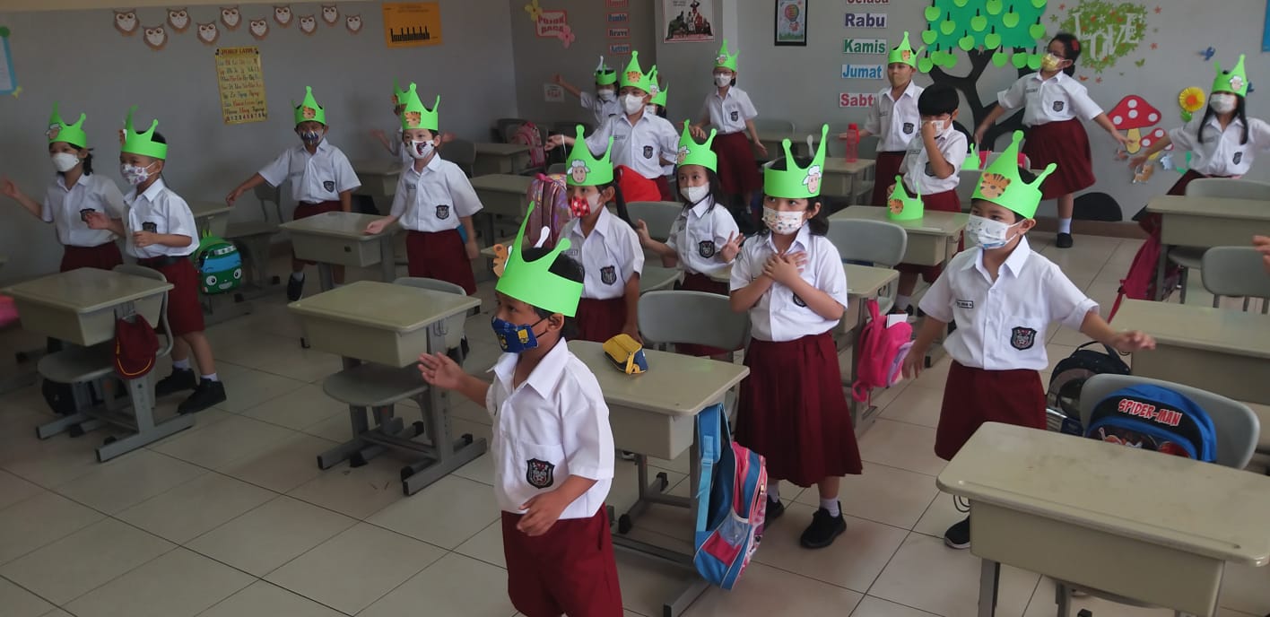 Kami sangat senang saat tiba di sekolah, teman-teman terlihat begitu gembira. Semua guru kami menyambut dengan ramah dan sukacita. Belajar secara tatap muka membuat kami lebih peduli, saling menghormati dan berkembangnya rasa kebersamaan.