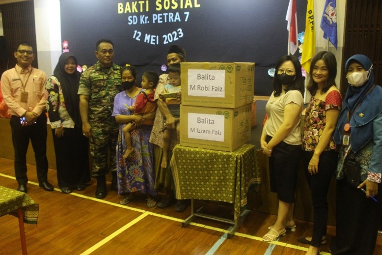 Dalam rangka peringatan Paskah 2023, keluarga besar SD Kristen Petra 7 mengajak seluruh warga sekolah untuk membuka diri dan berbagi kasih serta mewujudkan kepedulian yang nyata melalui kegiatan bakti sosial. Sebagai bagian dari warga kota Surabaya, tentunya SD Kristen Petra 7 ingin dapat memberi dampak yang nyata kepada warga sekitar, bukan hanya melalui pendidikan tetapi juga melalui kasih nyata yang bisa dirasakan oleh warga di sekitar sekolah. Oleh karena itu, bakti sosial Paskah tahun ini dilakukan dengan cara memberikan sumbangan berupa sembako dan bahan-bahan kebutuhan sehari-hari bagi warga jompo, warga kurang mampu, anak yatim dan balita stunting yang ada di lingkungan SD Kristen Petra 7. Terselenggaranya acara bakti sosial ini juga tidak lepas dari dukungan orang tua siswa dan seluruh warga SD Kristen Petra 7. Seluruh warga SD Kristen Petra 7 dan orang tua siswa menyambut dengan antusias kegiatan ini, sehingga acara ini berjalan dengan lancar.