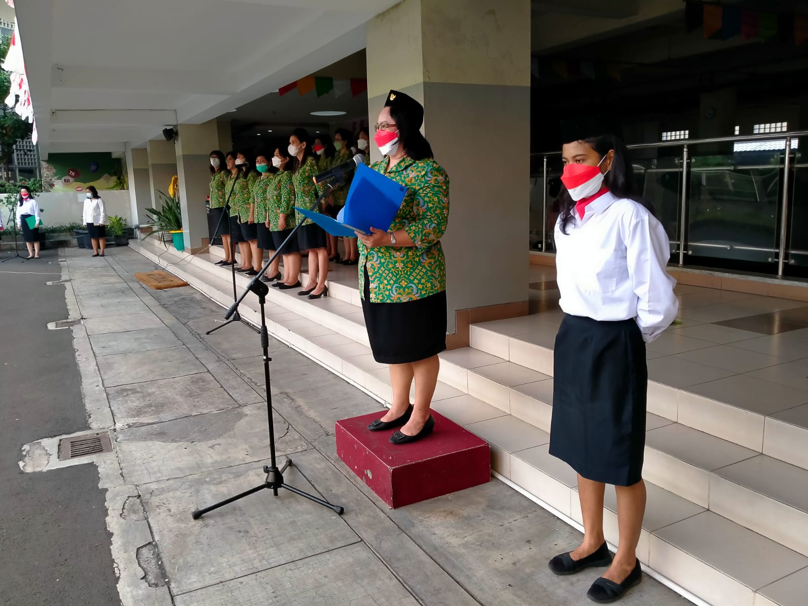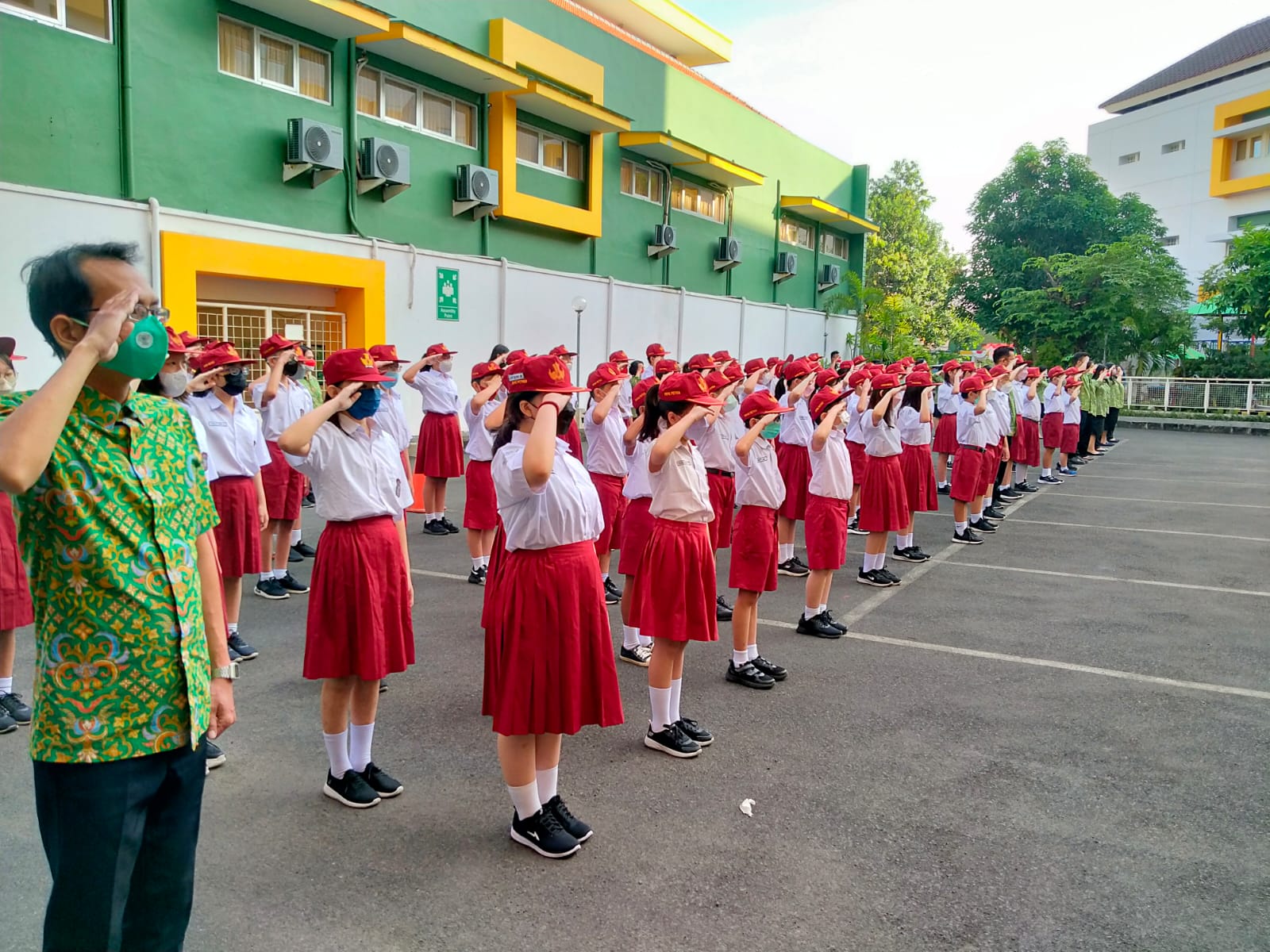 Kemudian pada tanggal 17 Agustus 2022, semua siswa memperingati HUT Ke-77 Republik Indonesia dengan mengikuti upacara bendera. Upacara bendera kali ini dilaksanakan secara online dan onsite. Para siswa kelas 1- 5 mengikuti upacara di rumah melalui youtube. Sedangkan para siswa kelas 6 beserta bapak/ibu guru mengikuti upacara bendera secara onsite atau langsung di sekolah. Kami semua mengikuti upacara bendera dengan khidmat. Kami bangga dan bersyukur atas kemerdekaan yang Tuhan berikan kepada Negara Indonesia yang tercinta ini. Nah, teman-teman sekarang waktunya kita untuk terus berjuang mengisi kemerdekaan dengan berbagai prestasi dan kegiatan positif.