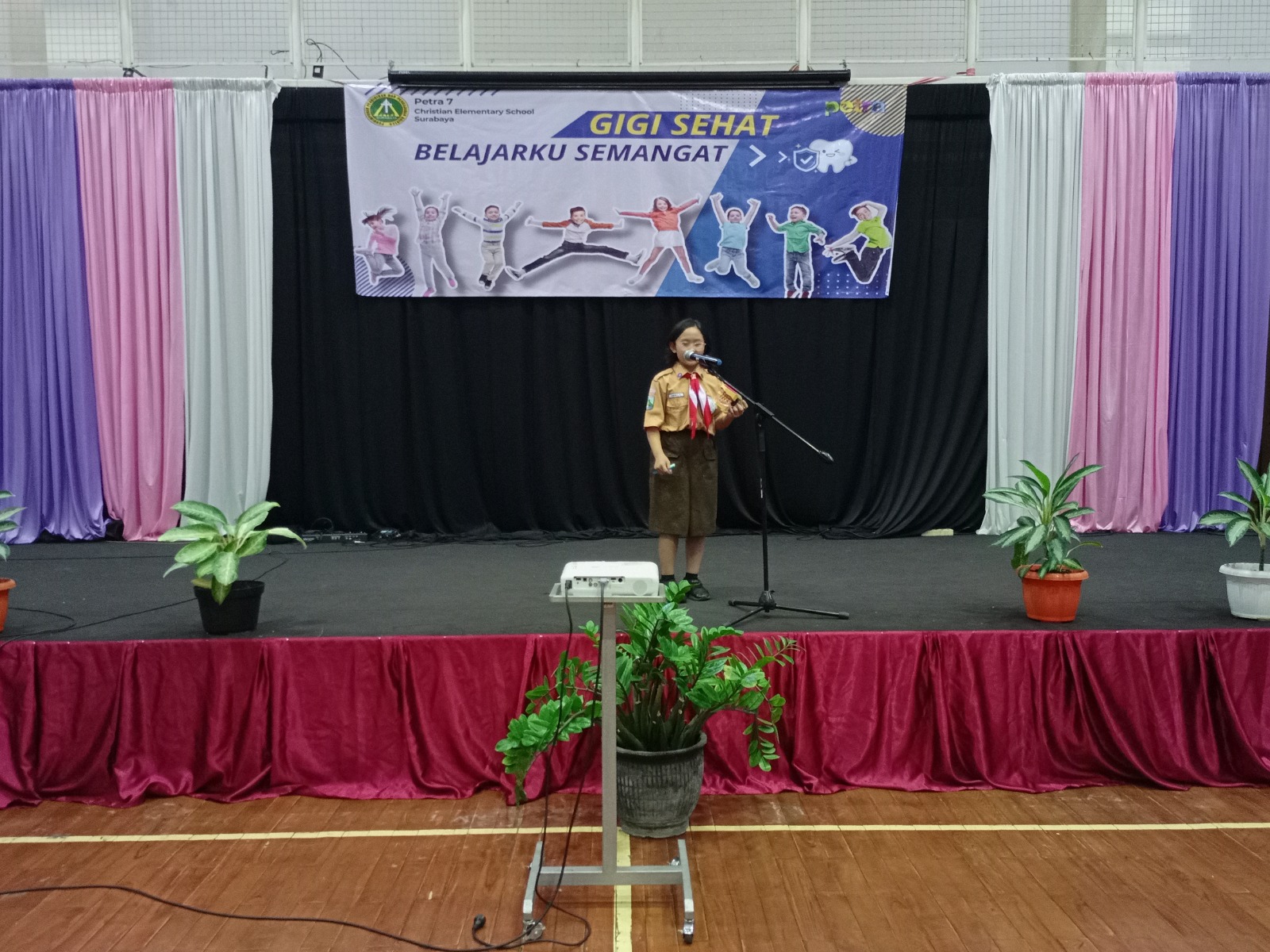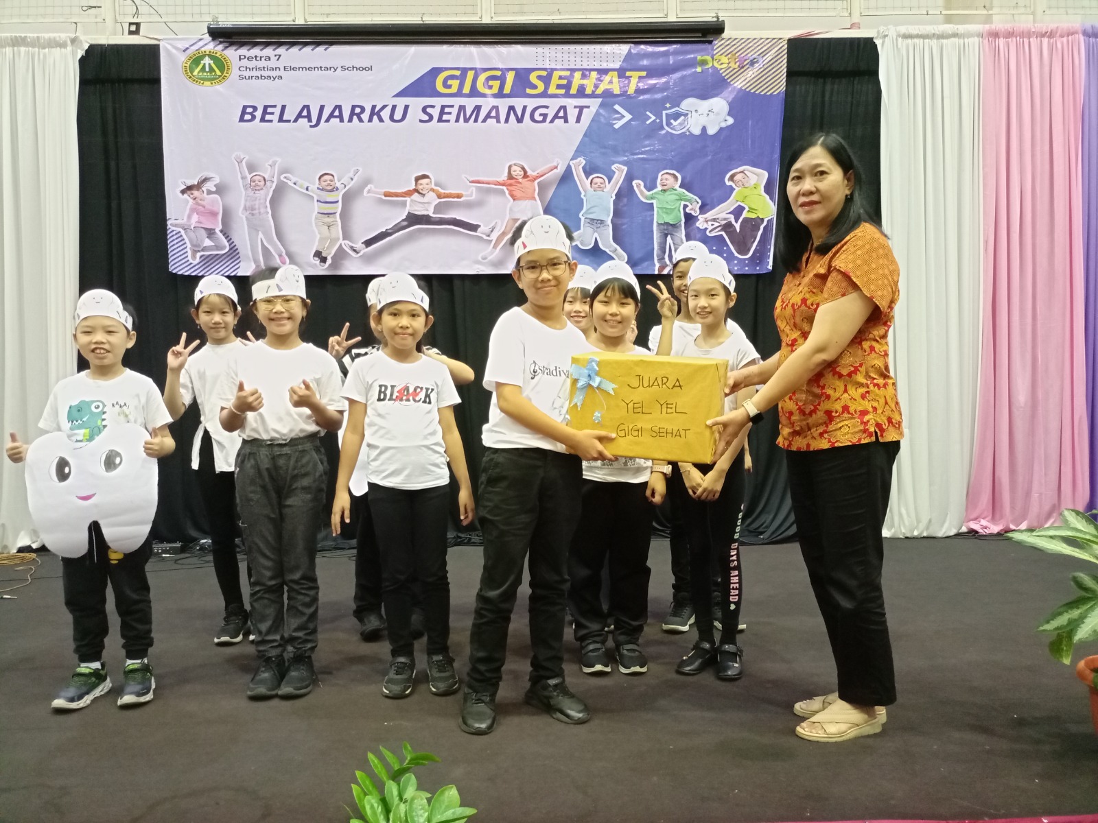 Rabu tanggal 20 Maret 2024 pukul 08.00 WIB,kami siswa kelas 4 SD Kristen Petra 7 sangat senang karena dapat mengikuti lomba gigi sehat dengan tema “ Gigi Sehat Belajarku Semangat”. Lombanya ada 2 kategori yaitu mempresentasikan cara merawat gigi sehat secara individu dan yel – yel secara berkelompok yang terdiri10 anak.Sebelum lomba gigi secara individu, dilakukan seleksi terlebih dahulu oleh dokter gigi Yasinta dengan melakukan pemeriksaan gigi seluruh siswa kelas empat. Dari seleksi tersebut terpilihlah empat siswa .