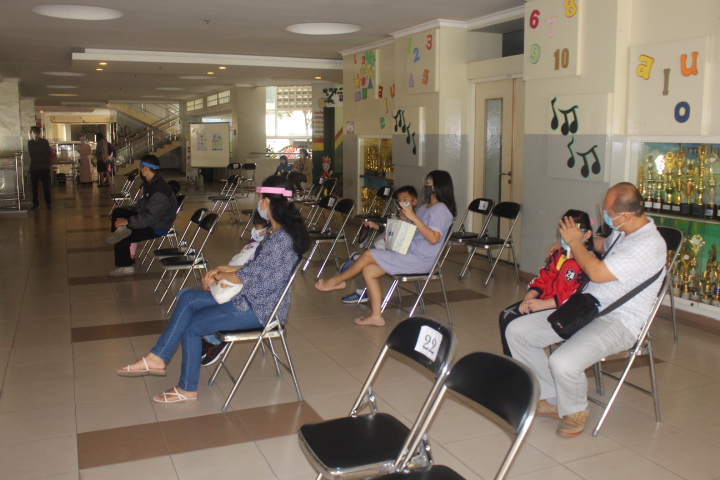 Terlihat para siswa kelas I dengan percaya diri datang ke sekolah dengan didampingi oleh orang tua. Mereka mengikuti arahan bapak dan ibu guru untuk menunggu giliran dengan tertib. Begitu juga dengan para siswi putri kelas V yang datang bersama orang tua.  Setelah selesai imunisasi, dokter menyampaikan pesan kepada siswa agar tetap menjaga kesehatan di masa pandemi ini.