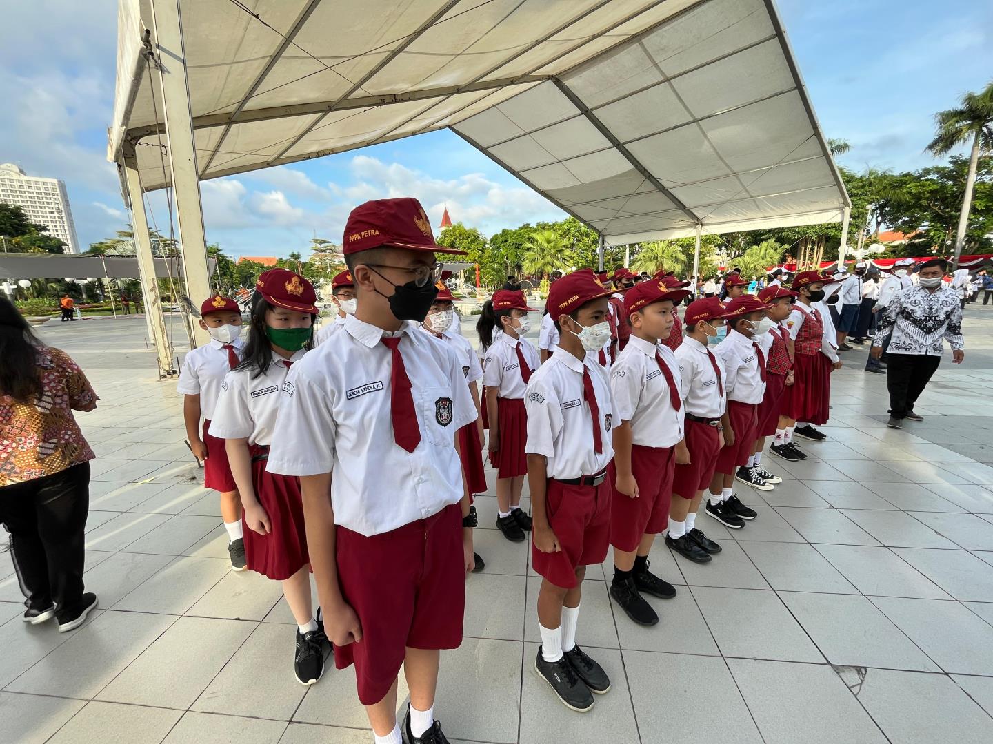 Hari Pendidikan Nasional adalah momen penting yang selalu dirayakan setiap tahunnya oleh seluruh pelajar dan tenaga pendidik. Mari kita rayakan Hardiknas dengan penuh semangat. Dalam memperingati Hari Pendidikan Nasional atau biasa disebut Hardiknas. Siswa-siswi SD Kristen Petra 7 melaksanakan upacara bendera. Mau tahu keseruan kami ? Yuk simak cerita berikut ini ! Pukul 07.20 WIB kami mengikuti upacara bendera di lapangan sekolah. Tidak hanya sebagai sebuah rutinitas, namun upacara ini menjadi momen yang sangat penting bagi seluruh siswa dan guru di sekolah kami. Siswa-siswi memakai seragam dengan rapi, tak lupa juga memakai topi upacara sebagai atribut. Mereka mengikuti upacara dengan penuh semangat, tertib, dan khidmat. Selain mengikuti upacara di sekolah, beberapa siswa kelas 5 juga mengikuti upacara di Balai Kota Surabaya, yang dimulai pukul 07.00 WIB lho. Mengikuti upacara bendera dengan tertib dan khidmat, berarti kita sudah berhasil mengamalkan Pancasila sila ke-3 yang berbunyi “Persatuan Indonesia” sebagai wujud rasa cinta tanah air. Kita sebagai pelajar harus aktif, kreatif, dan kritis dalam proses belajar sehingga sejalan dengan cita-cita Ki Hajar Dewantara untuk menjadi generasi bangsa yang mandiri, cerdas, dan berkarakter mulia menuju masa depan yang cerah.