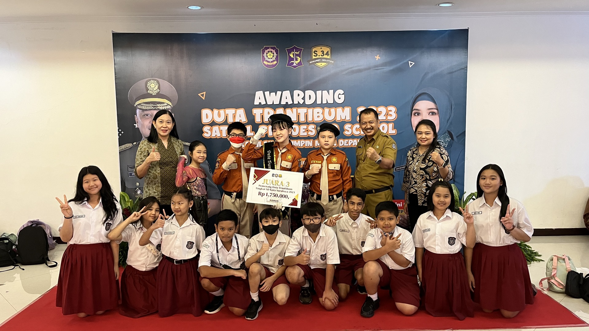Perlu teman-teman ketahui bahwa dalam rangkaian acara Road Show Satpol PP Goes to School 2023, kami telah mempresentasikan hasil dari program Duta Trantibum dalam rangka menjaga ketentraman dan ketertiban umum di lingkungan sekolah. Ada tim penilainya juga lho, dan untuk sekolah yang memiliki program terbaik akan menjadi pemenangnya. Nah, tiba saatnya nih moment yang di tunggu-tunggu, kira-kira kami menang atau tidak ya? Puji Tuhan.. Kami terpilih menjadi juara ke-3 Duta Trantibum terbaik dengan program “Don’t Bully, Be A Friends”. Suatu kebanggaan yang luar biasa bagi kami sebagai sekolah Kristen di Kota Surabaya, berhasil mendapatkan juara terbaik ke-3. Kami mengucapkan banyak terima kasih kepada seluruh siswa SD Kristen Petra 7 jenjang kelas I – VI yang telah ikut serta melaksanakan ketentraman dan ketertiban umum di lingkungan sekolah. Yuk teman-teman, kita serukan yel-yel Duta Trantibum sekolah kita!