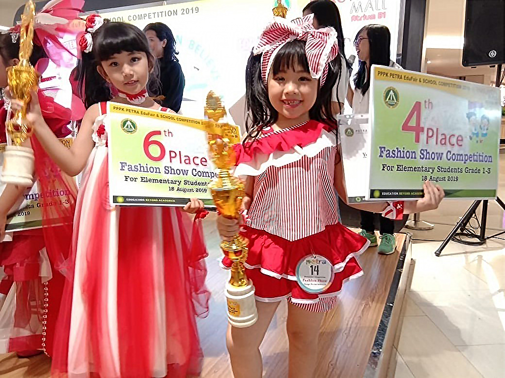 Dalam rangka memeriahkan Kemerdekaan Republik Indonesia yang ke-74, PPPK Petra mengadakan berbagai lomba tingkat Sekolah Dasar untuk wilayah Surabaya dan Sidoarjo dengan tema Change We Can Believe In. Salah satu lomba yang diikuti oleh beberapa siswa SD Kristen Petra 7 adalah Lomba Fashion Show untuk kelas I – VI dengan dress code nuansa merah putih, sesuai dengan warna bendera bangsa Indonesia, yang diselenggarakan pada hari Minggu, 18 Agustus 2019 di Pakuwon Mall Atrium B, Surabaya. Puji Tuhan, 4 siswa SD Kristen Petra 7 meraih kemenangan. Untuk kategori kelas I – III diraih oleh Yerica Stephanie Kurniawidi perwakilan dari kelas II sebagai Juara Harapan I dan Stacey Victoria Hartanto perwakilan dari kelas I sebagai Juara Harapan III. Untuk kategori kelas IV – VI diraih oleh Janice Clarence Tjen perwakilan kelas IV sebagai Juara II dan Michelle Evelyn Joandry Limahelu perwakilan kelas IV sebagai Juara Harapan I. Prestasi yang diraih merupakan anugerah dari Tuhan yang sudah memperlengkapi setiap anak-anakNya dengan talenta yang sangat berharga. Selamat untuk para pemenang. Untuk peserta yang belum berhasil menjadi juara, jangan putus asa. Tetap berlatih dengan penuh semangat pada kesempatan berikutnya. Thank you Lord for all the achievements. God is good.