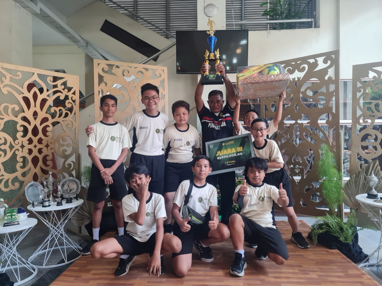 Seperti yang dilakukan oleh perwakilan siswa kelas 5 dan 6 SD Kristen Petra 7. Tidak hanya menjadikan olahraga sebagai hobi, tetapi juga menjadikan sebuah prestasi. Mau tau jenis olahraga apa yang diikuti oleh siswa SD Kristen Petra 7 ? Yups, betul olahraga futsal. Pada hari Jumat, 6 Oktober 2023 perwakilan kelas 5 dan 6 SD Kristen Petra 7 mengikuti pertandingan futsal Sanmar Championship 2023 tingkat SD se-Surabaya. Pertandingan ini dilaksanakan di SD Santa Maria. Dengan persiapan mental dan fisik yang baik, banyak latihan, dan semangat yang tak kenal lelah, Puji Tuhan SD Kristen Petra 7 meraih juara 3 pada perlombaan ini. Tentu hasil tersebut menjadi sebuah kebanggan tersendiri bagi siswa, orang tua, dan guru SD Kristen Petra 7. Jadi teman-teman, ternyata hobi olahraga yang kita miliki bisa membuahkan prestasi yang mengesankan jika kita giat berlatih dan mau berusaha lho…! Olahraga tidak harus futsal, mungkin teman-teman memiliki hobi olahraga yang lain sesuai dengan kesenangan kalian sendiri, misalnya hobi bermain bulu tangkis, basket, berenang, atau yang lainnya. Ayo, kita kembangkan hobi yang kita sukai untuk menghasilkan prestasi yang mengesankan!
