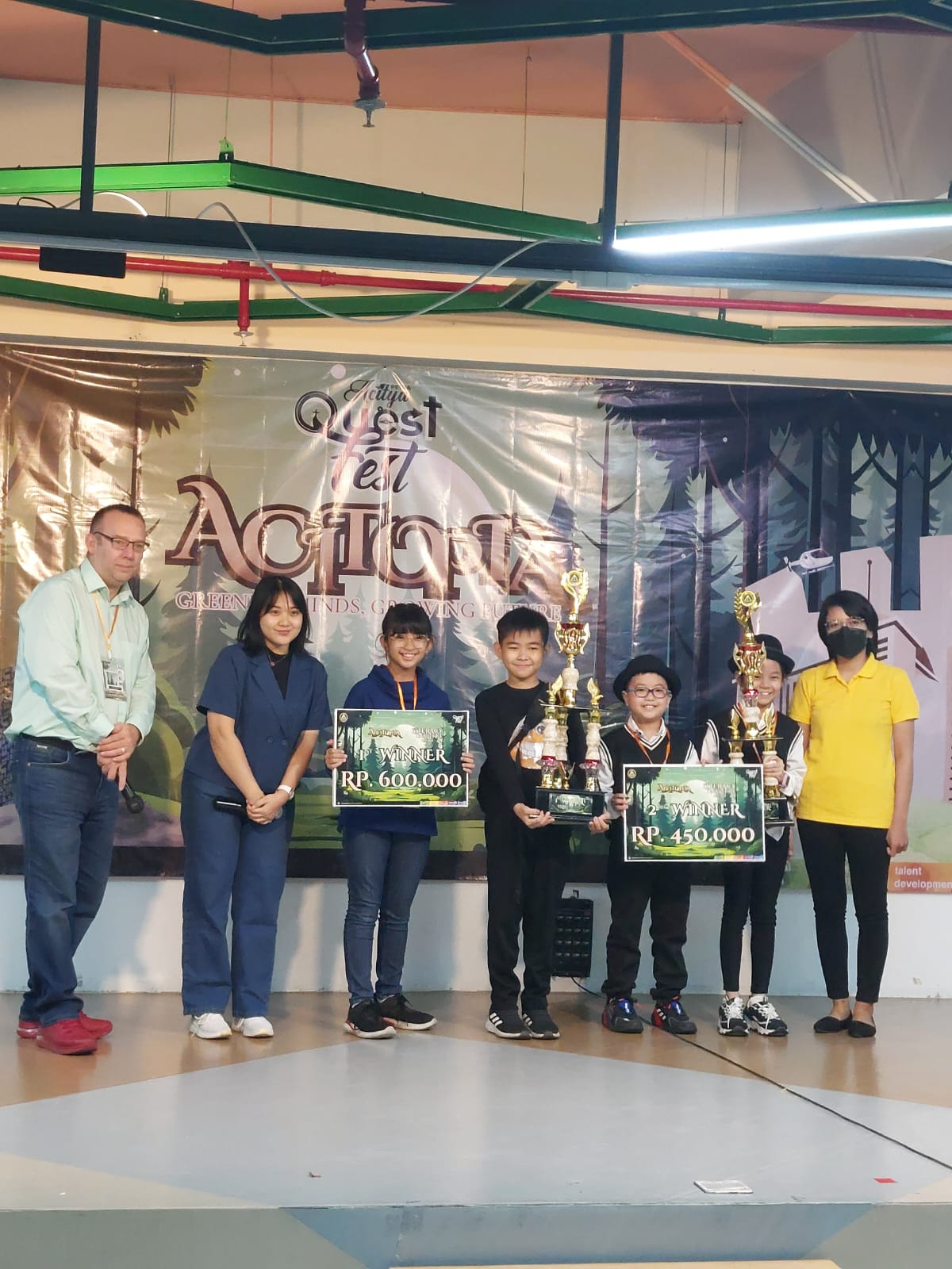 Kebetulan kami sudah menyiapkan recycle toys yang sudah pernah kami buat saat kegiatan P5 di sekolah. Boneka tersebut kami beri nama Roby dan Ruby. Saat tampil, gagasan yang kami sampaikan bertema “Small Hands Can Change The World” yang artinya sebagai anak-anak kita juga dapat turut berperan serta untuk mengubah dunia. Di akhir tampilan, kami menyanyikan lagu “We Are The World” dengan tujuan mengajak teman-teman turut berperan mengubah dunia untuk menjadi lebih baik.