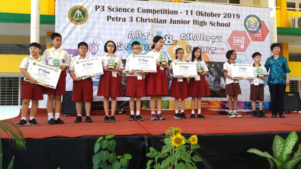 Kami, siswa-siswi SD Kristen Petra 7, mengikuti kegiatan lomba science di SMP Kristen Petra 3 pada hari Jumat, tanggal 11 Oktober 2019. Sebelum lomba, tiap hari kami dibekali ilmu dan dilatih oleh guru-guru pembimbing kami. Ada rasa khawatir yang sempat muncul dalam pikiran kami, tetapi bimbingan dan motivasi yang diberikan oleh bapak dan ibu guru pembimbing membuat kami siap menghadapi lomba.