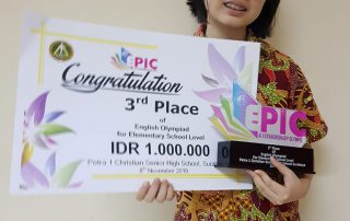 Belajar Bahasa Inggris sangat menyenangkan bagi Vita Adeline Hartono, salah satu siswa kelas VI SD Kristen Petra 7. Vita suka membaca buku Bahasa Inggris untuk mengasah keterampilan Bahasa Inggrisnya. Pada hari Jumat, 8 November 2019, Vita mengikuti English Olympiad for Elementary School Level yang diadakan oleh SMA Kristen Petra 1. Sebagai persiapan lomba, Vita mengikuti bimbingan belajar setelah pulang sekolah yang dibimbing oleh guru-guru Bahasa Inggris di sekolah. Puji Tuhan.. berkat ketekunan dan kerja